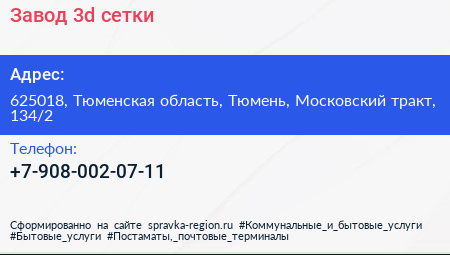 Завод 3d-сетки по адресу 625018, Тюменская область, Тюмень, Московский тракт, 134/2 в дальнейшем Организация, размещена в следующих категориях: