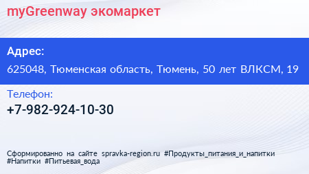 myGreenway, экомаркет по адресу 625048, Тюменская область, Тюмень, 50 лет ВЛКСМ, 19 в дальнейшем Организация, размещена в следующих категориях: