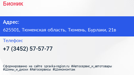 Бионик по адресу 625501, Тюменская область, Тюмень, Бурлаки, 21в в дальнейшем Организация, размещена в следующих категориях: