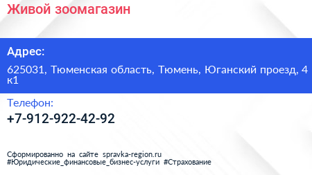Живой, зоомагазин по адресу 625031, Тюменская область, Тюмень, Юганский проезд, 4 к1 в дальнейшем Организация, размещена в следующих категориях: