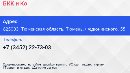 БКК и Ко по адресу 625033, Тюменская область, Тюмень, Федюнинского, 55 в дальнейшем Организация, размещена в следующих категориях: