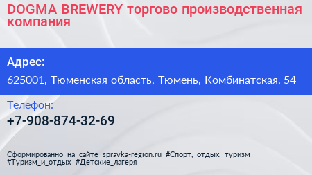 DOGMA BREWERY, торгово-производственная компания по адресу 625001, Тюменская область, Тюмень, Комбинатская, 54 в дальнейшем Организация, размещена в следующих категориях: