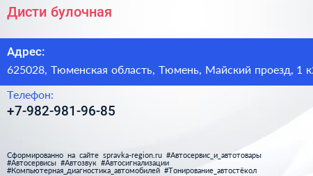 Дисти, булочная по адресу 625028, Тюменская область, Тюмень, Майский проезд, 1 к2 в дальнейшем Организация, размещена в следующих категориях: