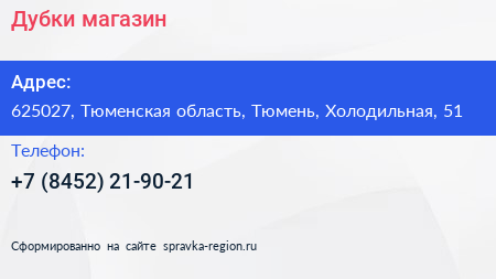 Дубки, магазин по адресу 625027, Тюменская область, Тюмень, Холодильная, 51 в дальнейшем Организация, размещена в следующих категориях: