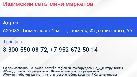 Ишимский, сеть мини-маркетов по адресу 625033, Тюменская область, Тюмень, Федюнинского, 55 в дальнейшем Организация, размещена в следующих категориях: