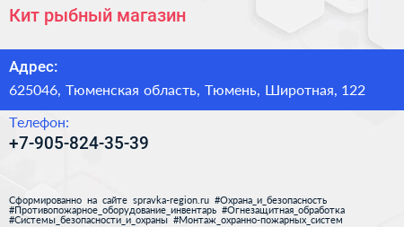 Кит, рыбный магазин по адресу 625046, Тюменская область, Тюмень, Широтная, 122 в дальнейшем Организация, размещена в следующих категориях: