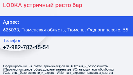LODKA, устричный ресто-бар по адресу 625033, Тюменская область, Тюмень, Федюнинского, 55 в дальнейшем Организация, размещена в следующих категориях: