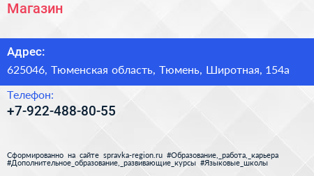 Магазин по адресу 625046, Тюменская область, Тюмень, Широтная, 154а в дальнейшем Организация, размещена в следующих категориях: