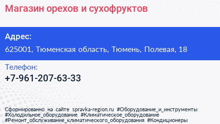 Магазин орехов и сухофруктов по адресу 625001, Тюменская область, Тюмень, Полевая, 18 в дальнейшем Организация, размещена в следующих категориях: