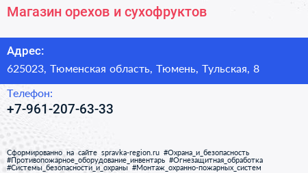 Магазин орехов и сухофруктов по адресу 625023, Тюменская область, Тюмень, Тульская, 8 в дальнейшем Организация, размещена в следующих категориях: