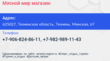 Мясной мир, магазин по адресу 625027, Тюменская область, Тюмень, Минская, 67 в дальнейшем Организация, размещена в следующих категориях:
