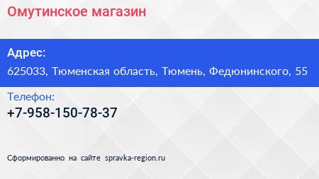 Омутинское, магазин по адресу 625033, Тюменская область, Тюмень, Федюнинского, 55 в дальнейшем Организация, размещена в следующих категориях: