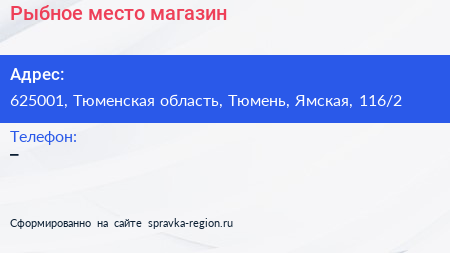 Рыбное место, магазин по адресу 625001, Тюменская область, Тюмень, Ямская, 116/2 в дальнейшем Организация, размещена в следующих категориях: