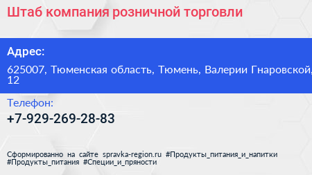 Штаб, компания розничной торговли по адресу 625007, Тюменская область, Тюмень, Валерии Гнаровской, 12 в дальнейшем Организация, размещена в следующих категориях: