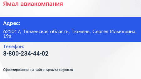 Ямал, авиакомпания по адресу 625017, Тюменская область, Тюмень, Сергея Ильюшина, 19а в дальнейшем Организация, размещена в следующих категориях: