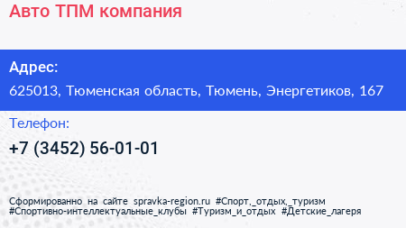 Авто-ТПМ, компания по адресу 625013, Тюменская область, Тюмень, Энергетиков, 167 в дальнейшем Организация, размещена в следующих категориях: