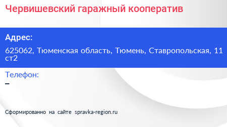 Червишевский, гаражный кооператив по адресу 625062, Тюменская область, Тюмень, Ставропольская, 11 ст2 в дальнейшем Организация, размещена в следующих категориях:
