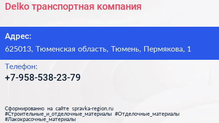 Delko, транспортная компания по адресу 625013, Тюменская область, Тюмень, Пермякова, 1 в дальнейшем Организация, размещена в следующих категориях: