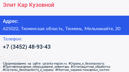 Элит Кар Кузовной по адресу 625022, Тюменская область, Тюмень, Мельникайте, 20 в дальнейшем Организация, размещена в следующих категориях: