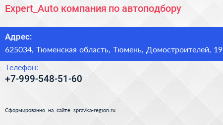 Expert_Auto, компания по автоподбору по адресу 625034, Тюменская область, Тюмень, Домостроителей, 19 в дальнейшем Организация, размещена в следующих категориях: