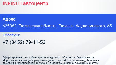 INFINITI, автоцентр по адресу 625062, Тюменская область, Тюмень, Федюнинского, 65 в дальнейшем Организация, размещена в следующих категориях: