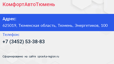 КомфортАвтоТюмень по адресу 625019, Тюменская область, Тюмень, Энергетиков, 100 в дальнейшем Организация, размещена в следующих категориях: