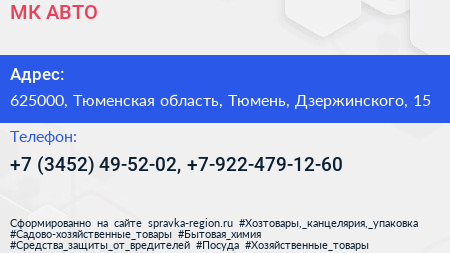 МК-АВТО по адресу 625000, Тюменская область, Тюмень, Дзержинского, 15 в дальнейшем Организация, размещена в следующих категориях: