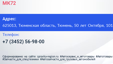 МК72 по адресу 625013, Тюменская область, Тюмень, 50 лет Октября, 101а в дальнейшем Организация, размещена в следующих категориях: