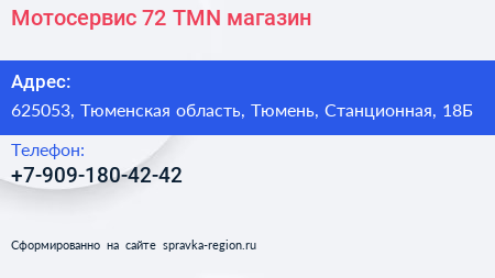 Мотосервис-72-TMN, магазин по адресу 625053, Тюменская область, Тюмень, Станционная, 18Б в дальнейшем Организация, размещена в следующих категориях: