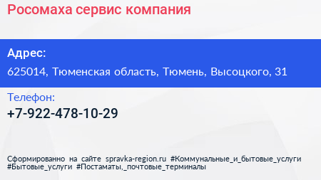 Росомаха-сервис, компания по адресу 625014, Тюменская область, Тюмень, Высоцкого, 31 в дальнейшем Организация, размещена в следующих категориях: