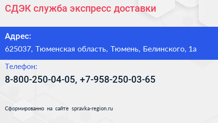 СДЭК, служба экспресс-доставки по адресу 625037, Тюменская область, Тюмень, Белинского, 1а в дальнейшем Организация, размещена в следующих категориях:
