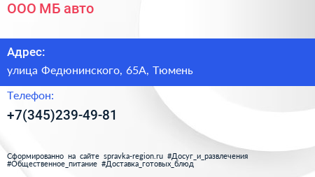 ООО «МБ-авто» по адресу улица Федюнинского, 65А, Тюмень в дальнейшем Организация, размещена в следующих категориях:
