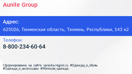 Aunite Group по адресу 625026, Тюменская область, Тюмень, Республики, 143 к2 в дальнейшем Организация, размещена в следующих категориях: