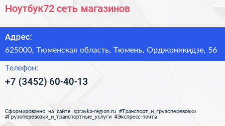 Ноутбук72, сеть магазинов по адресу 625000, Тюменская область, Тюмень, Орджоникидзе, 56 в дальнейшем Организация, размещена в следующих категориях: