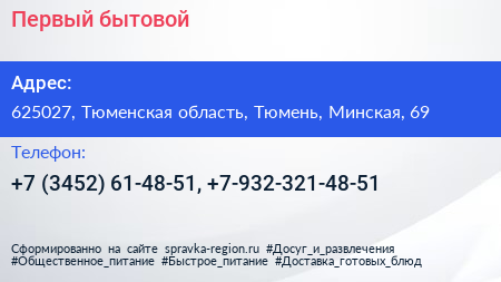 Первый бытовой по адресу 625027, Тюменская область, Тюмень, Минская, 69 в дальнейшем Организация, размещена в следующих категориях: