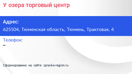 У озера, торговый центр по адресу 625504, Тюменская область, Тюмень, Трактовая, 4 в дальнейшем Организация, размещена в следующих категориях: