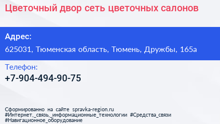 Цветочный двор, сеть цветочных салонов по адресу 625031, Тюменская область, Тюмень, Дружбы, 165а в дальнейшем Организация, размещена в следующих категориях: