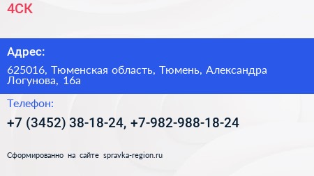 4СК по адресу 625016, Тюменская область, Тюмень, Александра Логунова, 16а в дальнейшем Организация, размещена в следующих категориях: