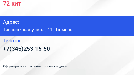 72 кит по адресу Таврическая улица, 11, Тюмень в дальнейшем Организация, размещена в следующих категориях: