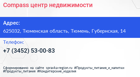 Compass, центр недвижимости по адресу 625032, Тюменская область, Тюмень, Губернская, 14 в дальнейшем Организация, размещена в следующих категориях: