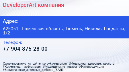 DeveloperArt, компания по адресу 625051, Тюменская область, Тюмень, Николая Гондатти, 1/2 в дальнейшем Организация, размещена в следующих категориях: