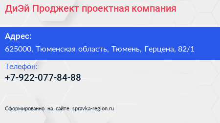 ДиЭй Проджект, проектная компания по адресу 625000, Тюменская область, Тюмень, Герцена, 82/1 в дальнейшем Организация, размещена в следующих категориях:
