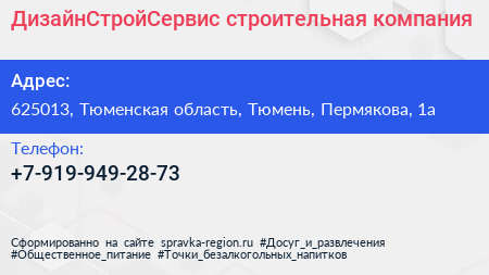 ДизайнСтройСервис, строительная компания по адресу 625013, Тюменская область, Тюмень, Пермякова, 1а в дальнейшем Организация, размещена в следующих категориях: