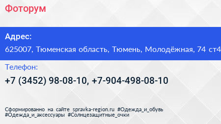 Фоторум по адресу 625007, Тюменская область, Тюмень, Молодёжная, 74 ст4 в дальнейшем Организация, размещена в следующих категориях: