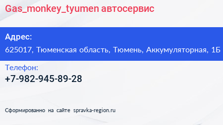 Gas_monkey_tyumen, автосервис по адресу 625017, Тюменская область, Тюмень, Аккумуляторная, 1Б в дальнейшем Организация, размещена в следующих категориях: