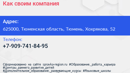 Как своим, компания по адресу 625000, Тюменская область, Тюмень, Хохрякова, 52 в дальнейшем Организация, размещена в следующих категориях: