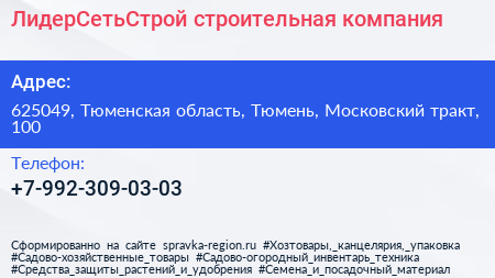 ЛидерСетьСтрой, строительная компания по адресу 625049, Тюменская область, Тюмень, Московский тракт, 100 в дальнейшем Организация, размещена в следующих категориях: