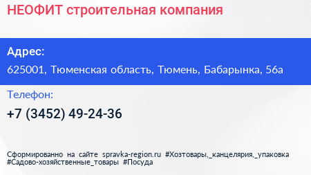 НЕОФИТ, строительная компания по адресу 625001, Тюменская область, Тюмень, Бабарынка, 56а в дальнейшем Организация, размещена в следующих категориях: