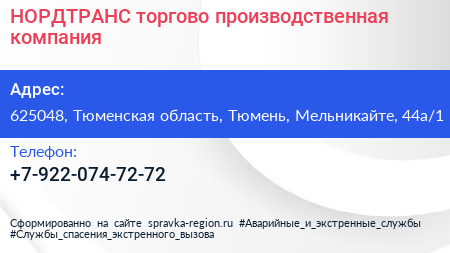 НОРДТРАНС, торгово-производственная компания по адресу 625048, Тюменская область, Тюмень, Мельникайте, 44а/1 в дальнейшем Организация, размещена в следующих категориях: