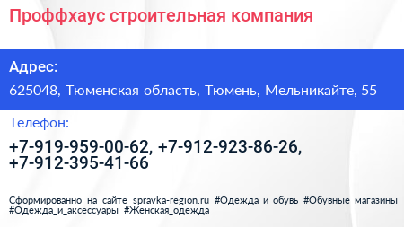 Проффхаус, строительная компания по адресу 625048, Тюменская область, Тюмень, Мельникайте, 55 в дальнейшем Организация, размещена в следующих категориях: